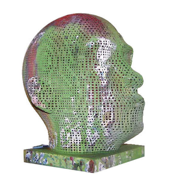 The polyethylene clippings smeared with color displayed in the museum are fragments of a large sheet lying on the floor for an intense performance (here documented by a video) during which, under the eyes of a large audience, Shimamoto in music time acted throwing heavily and randomness different containers of color on a long stretch of canvas and sculptures of heads.